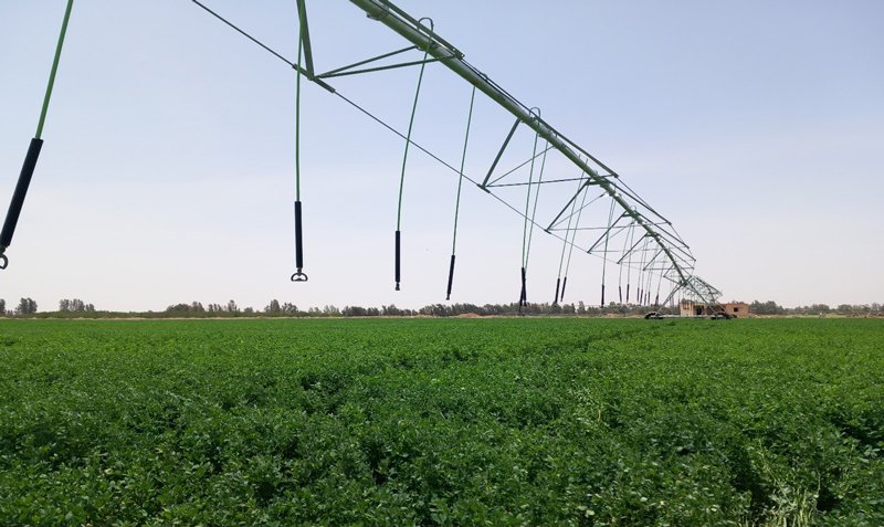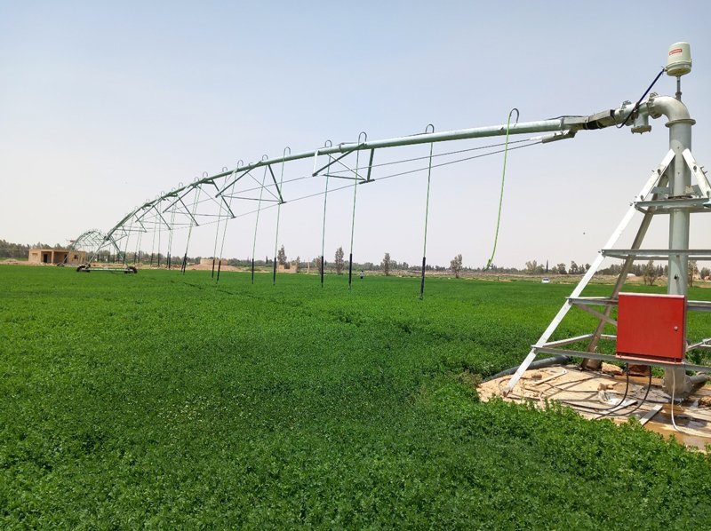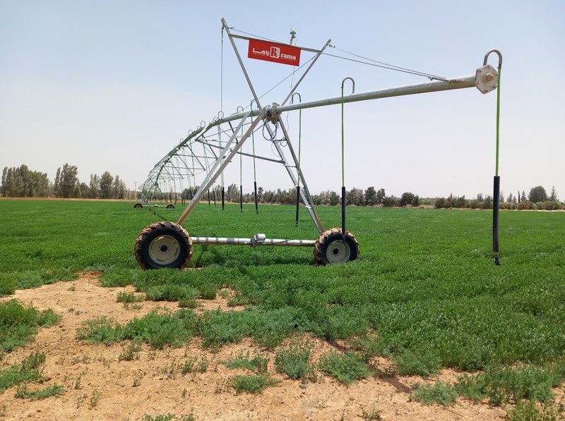 يتكون هذا النظام من المواسير قطر 6 5/8انش (168ملم ) نوع ASTM A513 بطول 6.71 متر للماسورة المتصلة ببعضها البعض و قضبان بسماكة لا تقل عن 18ملم و زوايا حديد نوع S275 , يتم توصيل كل محورين بواسطة مفصل متعدد الاتجاهات يسمح بتكوين زاوية تصل إلى 30 درجة , وبالتالي يكون المحور مناسبًا للأراضي الوعرة. يروي هذا النظام من 1 هكتار الى 100 هكتار.
