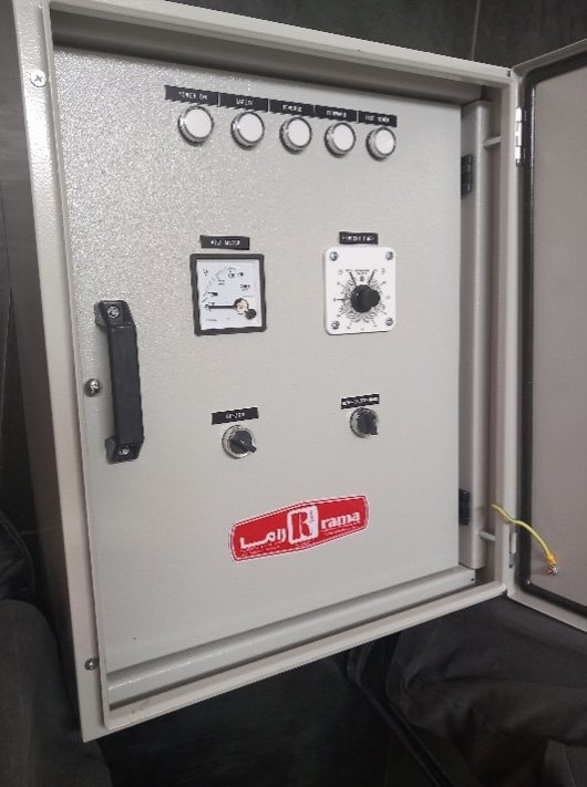 للوحة التي تتحكم بعمل الجهاز ككل و تعمل على تزويده بمصدر الطاقة و تحتوي على مكونات و قطع كهربائية للتحكم و ضبط تشغيل الجهاز. المكونات الرئيسية من صنع شنايدر الكترك أوروبا. و صندوق مصنع حسب المقاييس العالمية للعزل المائي و الحراري.